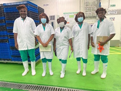 To meet the rigorous hygiene standards of this food processing facility, we swapped our standard field gear for full scrubs and protective wear.