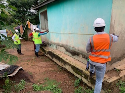 Surveyors Efia and the Regional Land Valuation officers are seen here checking to make sure that both the independent and community Valuers, reference mining affected properties to GhIS and global accepted valuation standardsOfficers of the Land Valuation Division in the Bono Region, are seen here taking measurements for the valuation of properties affected by mining for the purposes of compensation.